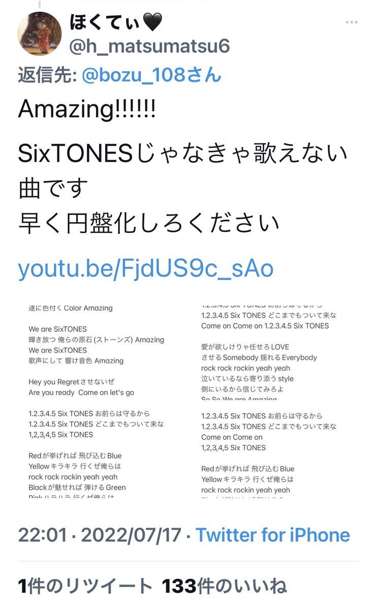 1日V6←NEW‼️