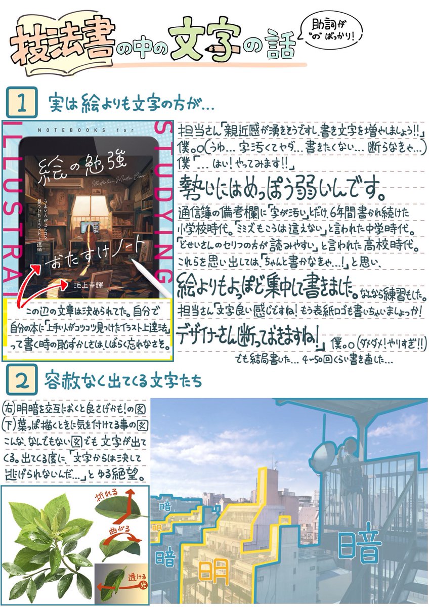 絵にまつわる使いやすい技法や考え方をまとめた本 「絵の勉強おたすけノート」の予約が始まりました! 質感や構図、ラフや線画など広く楽しめるように頑張って書きました! 何卒よろしくお願いします!