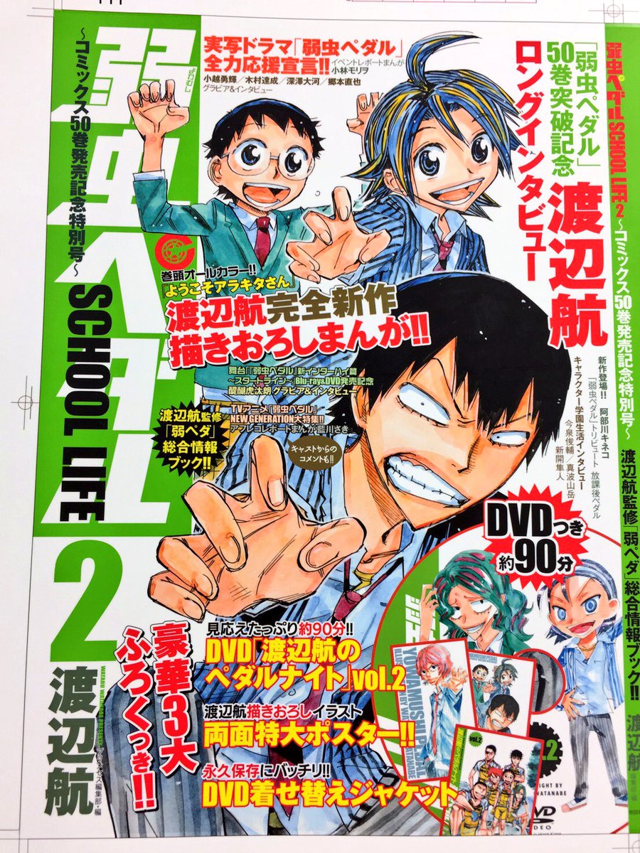 【情報②】「弱虫ペダル SCHOOL LIFE2」はふろくが盛りだくさん!前回大好評だったペダルナイトのDVD第2弾にDVDジャケット、両面ポスターの3大ふろく! 両面ポスターは渡辺先生描き下ろしの表紙&裏表紙イラストです。なんと今回は裏表紙も描き下ろしです!