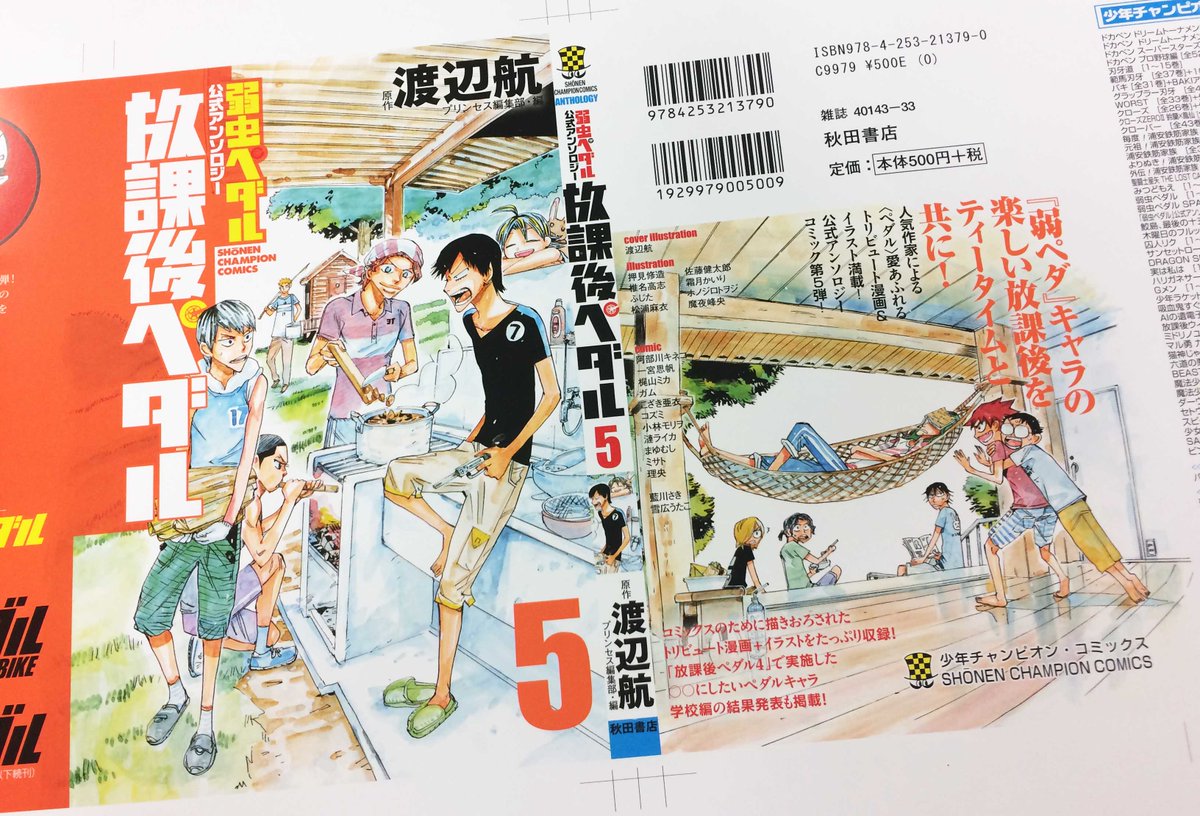 【弱虫ペダル②】→放課後ペダル5、豪華作家陣発表! 漫画:阿部川キネコ/一宮思帆/梶山ミカ/ガム/こざき亜衣/コズミ/小林モリヲ/漣ライカ/まゆむし/ミサト/理央/藍川さき/雪広うたこ(敬称略)「弱虫ペダル」48巻と1/6同時発売です、どうぞよろしくお願いいたします!