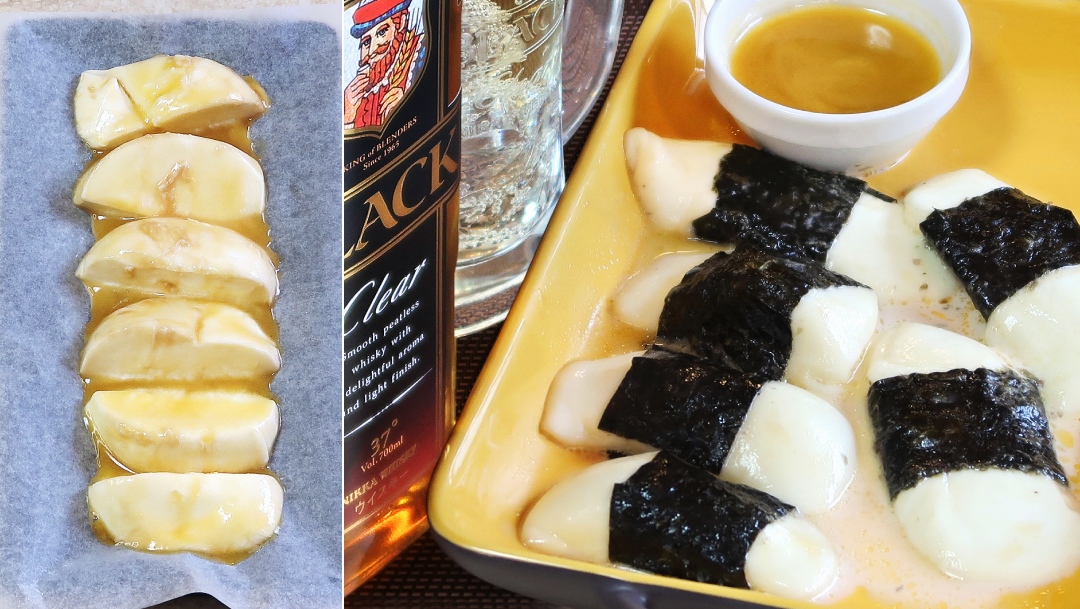 漬込み用瓶(約300ml)に #ブラックニッカ クリア150ml、砂糖25g、梨(皮付き)120gを入れる!冷暗所に保存し約4日で、ほんのり梨フレーバーのウイスキーが完成じゃ!ロックでよし、ハイボールでよし!すっきり軽やかで上品な甘さがいいのう!
