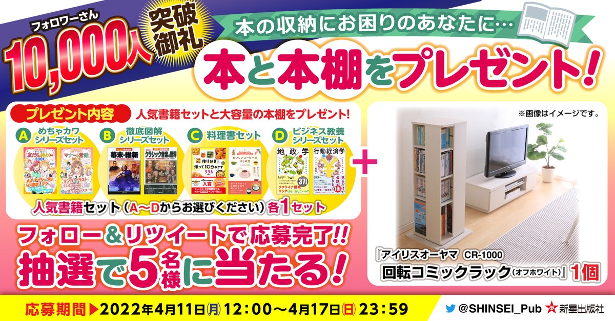 ①@SHINSEI_Pub をフォロー&このツイートをリツイートで応募完了!