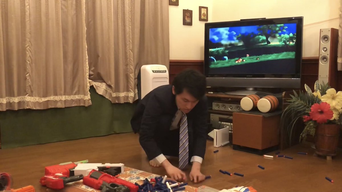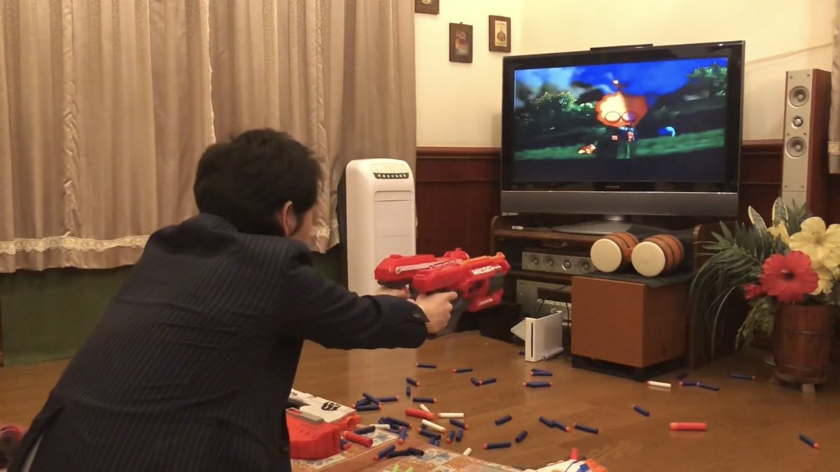 ナーフでジャングルビートをする男