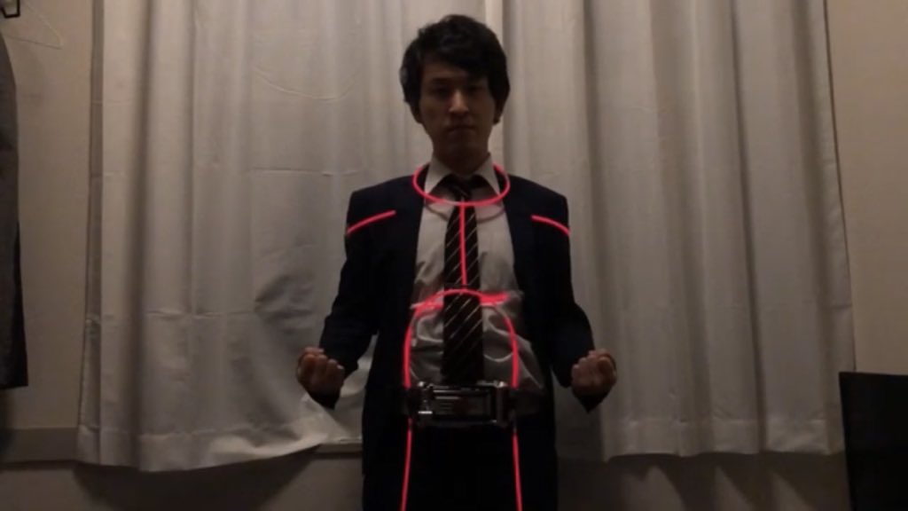 仮面ライダーフォーゼにナーフで変身する男。