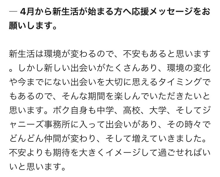 嵐って活動休止はするけどでも復活する気満々で、名目上は活動休止になっちゃうんだけど本人達的にはほんと夏休みくらいの感じにしか思ってなさそうで、しかもそれが「早く夏休み終わらないかなー!早く学校行きたいなー!」って感じで、嵐が1番嵐でいたいし嵐を愛してるんだよな。かなわねえわ。