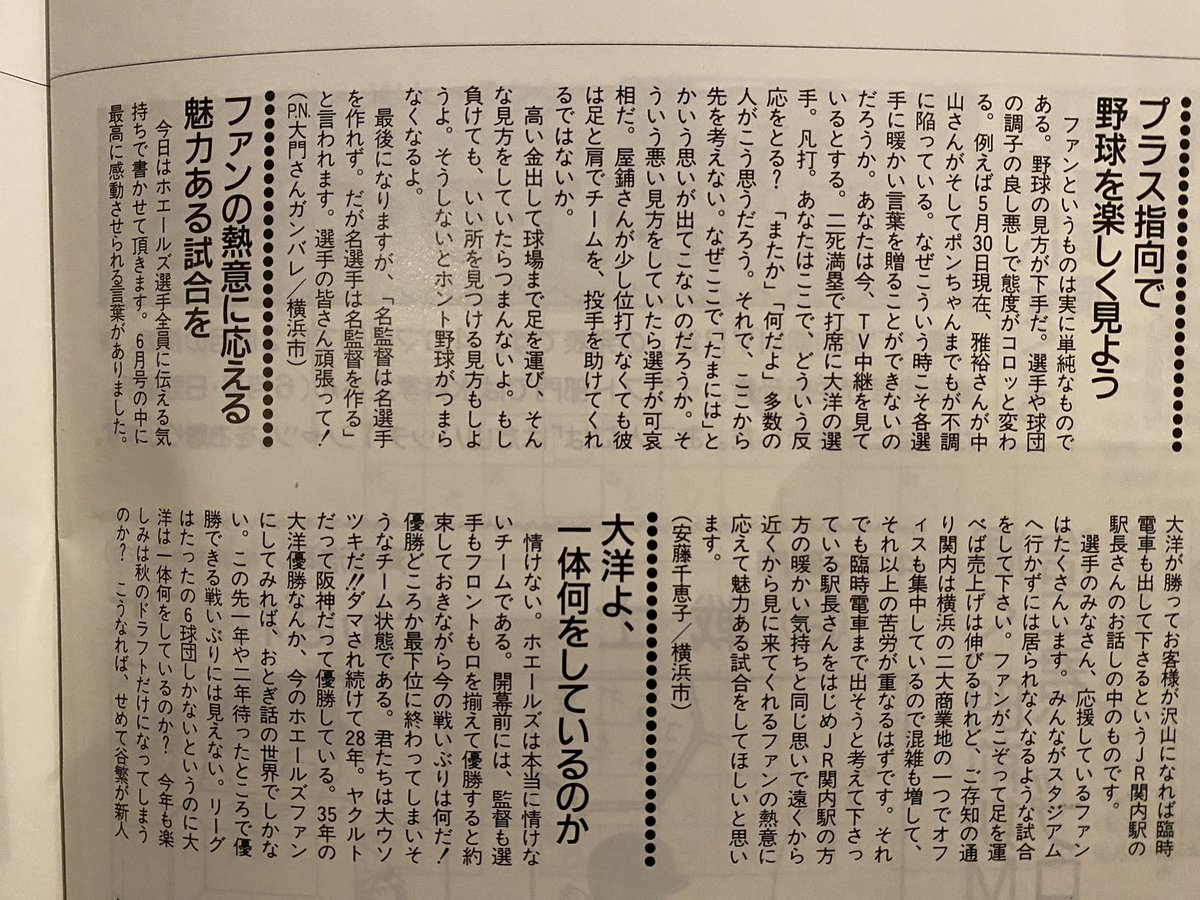 いいんです。その代わり、筒香や梶谷やロペスが50代になる頃まで、ベイスターズを愛してあげてください。