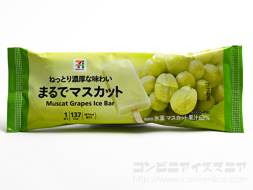 【アイスレビュー】セブン-イレブン数量限定!セブンプレミアム『まるでマスカット』。外側は、やらわかいアイスキャンディー、内側は濃厚でねっとりとしたジェラート食感。マスカット果汁を62%使用した果汁感溢れるフルーツアイスバー。数量限定なのでお見逃しなく! bit.ly/2S8Bq1e