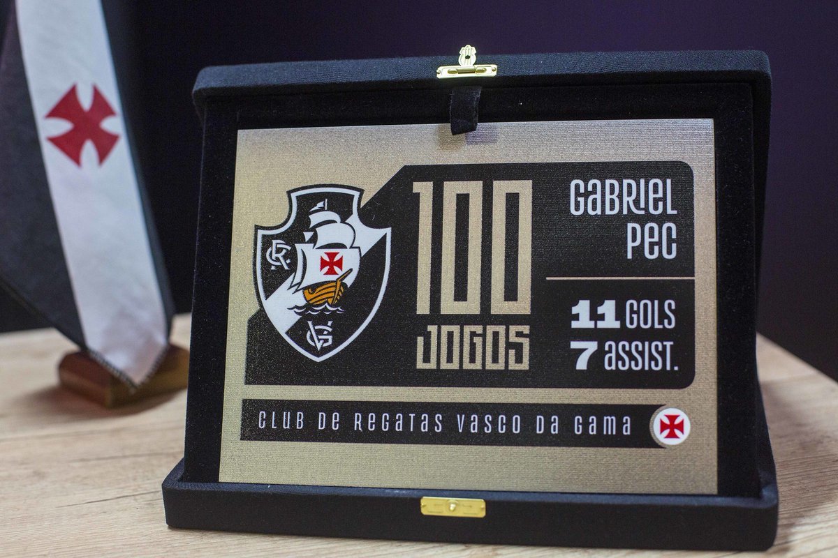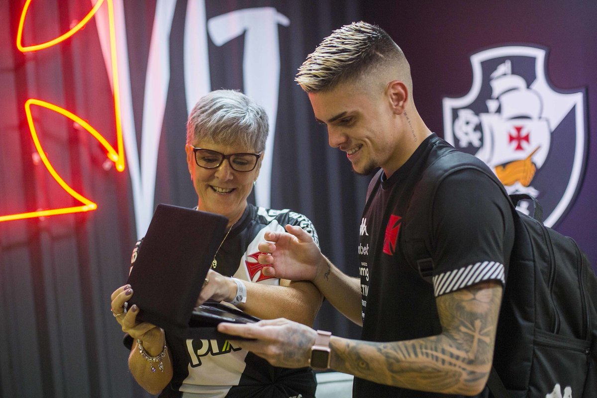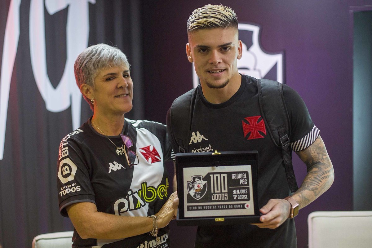 Silvana, mãe de Gabriel Pec, entregou a placa em comemoração aos 100 jogos do Cria da #BaseForte com a camisa do Vasco da Gama! 💢