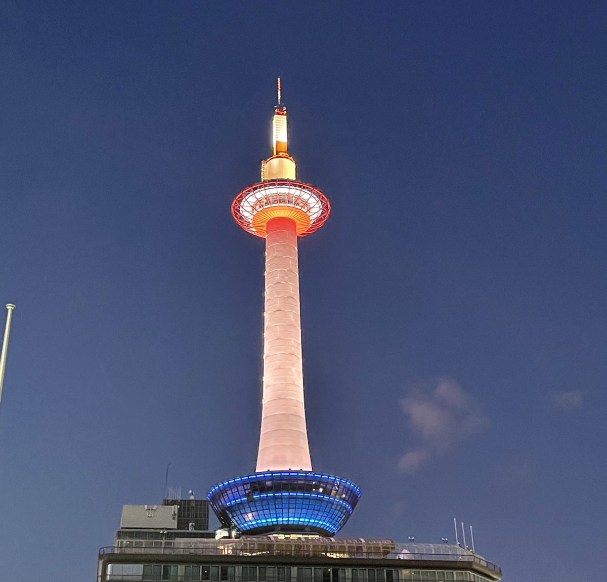 京都タワーのライトアップが赤くなってたよ いつもは白いらしいけど今日は赤だった😭 紫耀くんおめでとう