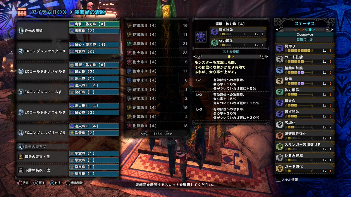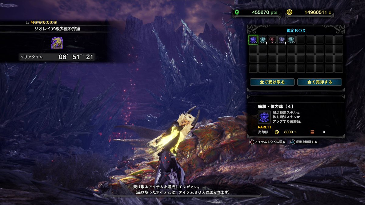 ですると、1週目徹甲ライトで3~4スタン頭部完全破壊と、斬撃組はスタン中に尻尾切断、したら顔面