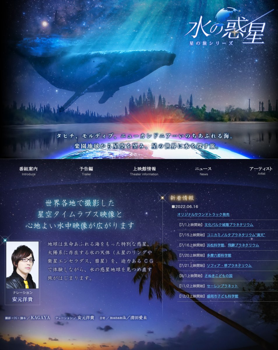世界で撮影した星空映像と水中映像を『水の惑星 -星の旅シリーズ-』というプラネタリウムで楽しめる作品にしました。