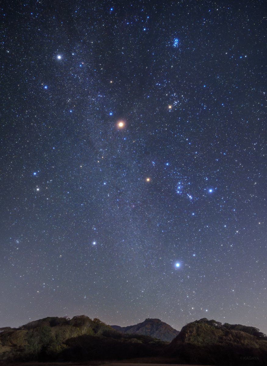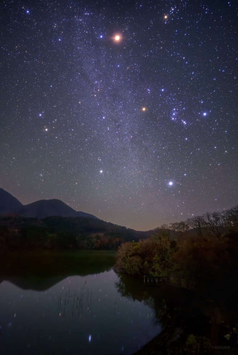 空の開けた場所ではその右下の方で輝く金星も見えるかもしれません。