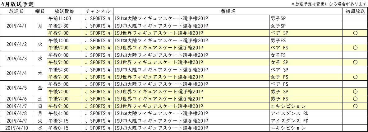 フィギュアスケート関連番組放送予定⛸️