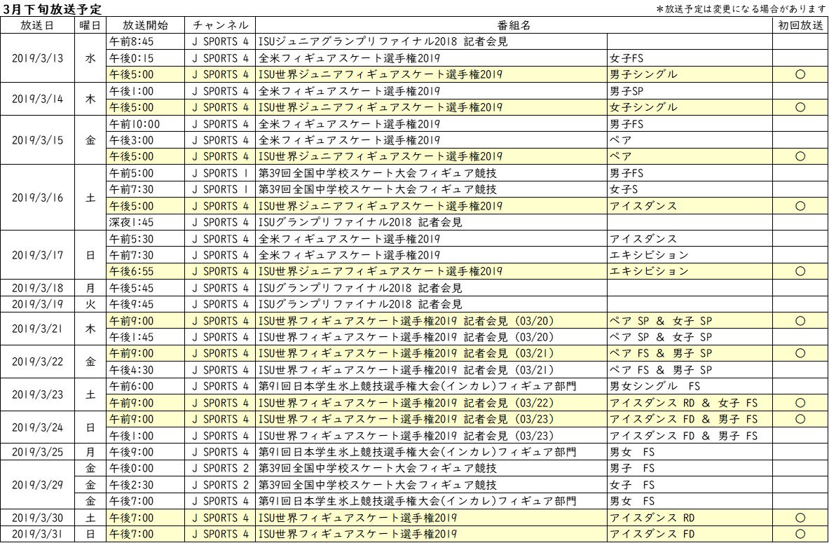 フィギュアスケート関連番組放送予定⛸️