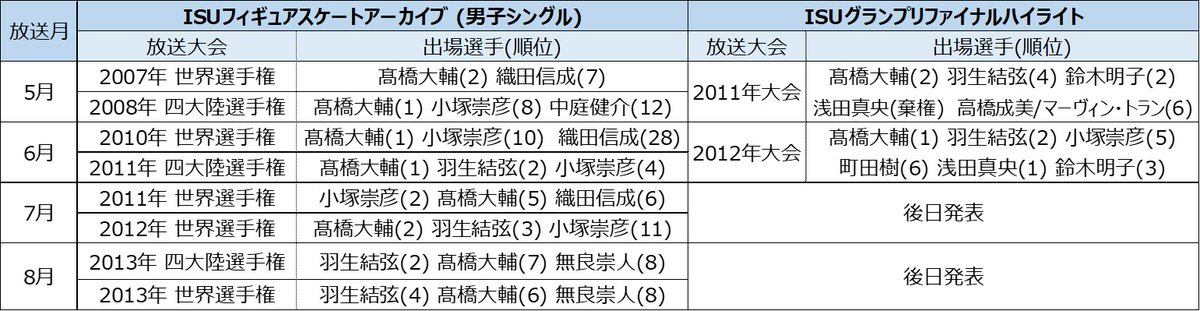 🔜5月以降もフィギュア関連番組がいっぱい😀