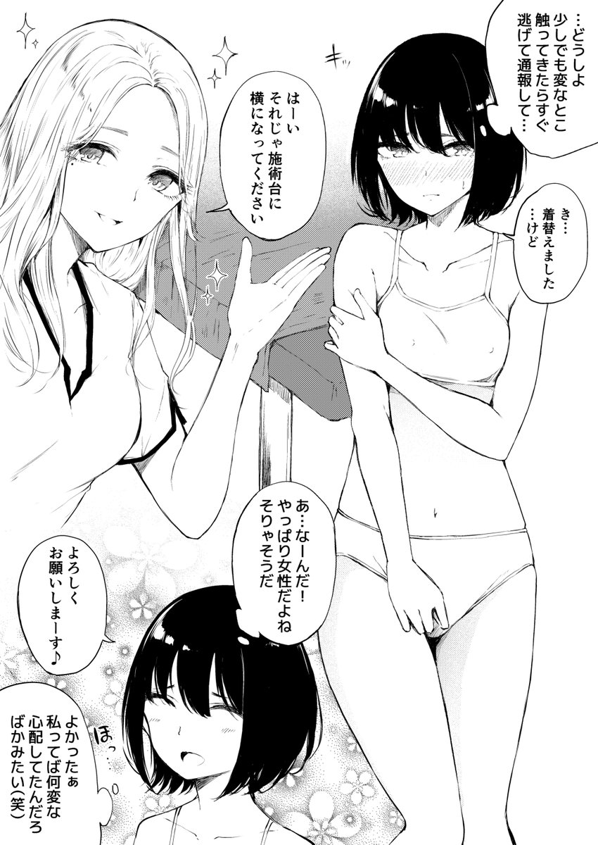 アロママッサージについて邪な知識を持っているため変に身構えていたが、施術者が女性だったので杞憂だったと安心していた女の子