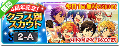 【お知らせ】現在、復刻『4周年記念クラス別スカウト 2-A』『3周年記念クラス別スカウト 2-A』を開催中です。