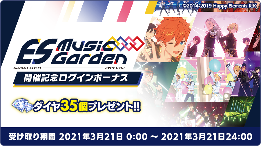 「ES Music Garden」開催を記念して3月21日 0時〜ログインボーナスを開催予定❗