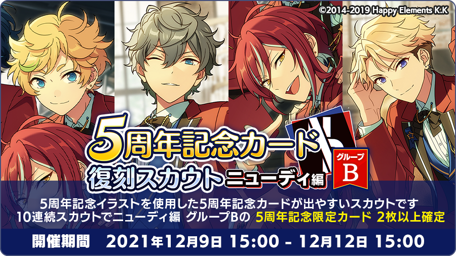 本日15時に『5周年記念カード復刻スカウト ニューディ編 グループB』を開始しました!🌟