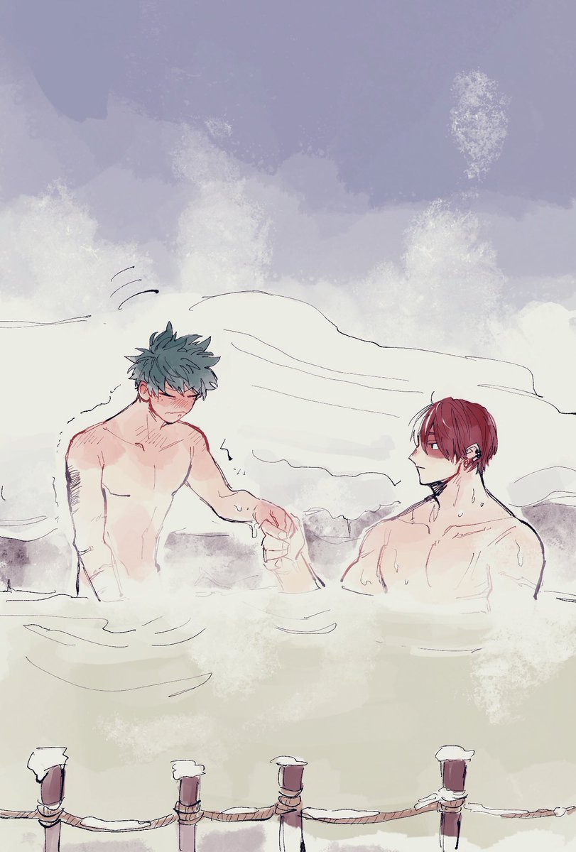 温泉の湯加減🍰くんが丁度いいって言うので入ったらん"ん"~~~・・・・ッてなる🥦くん 新ジュのえ