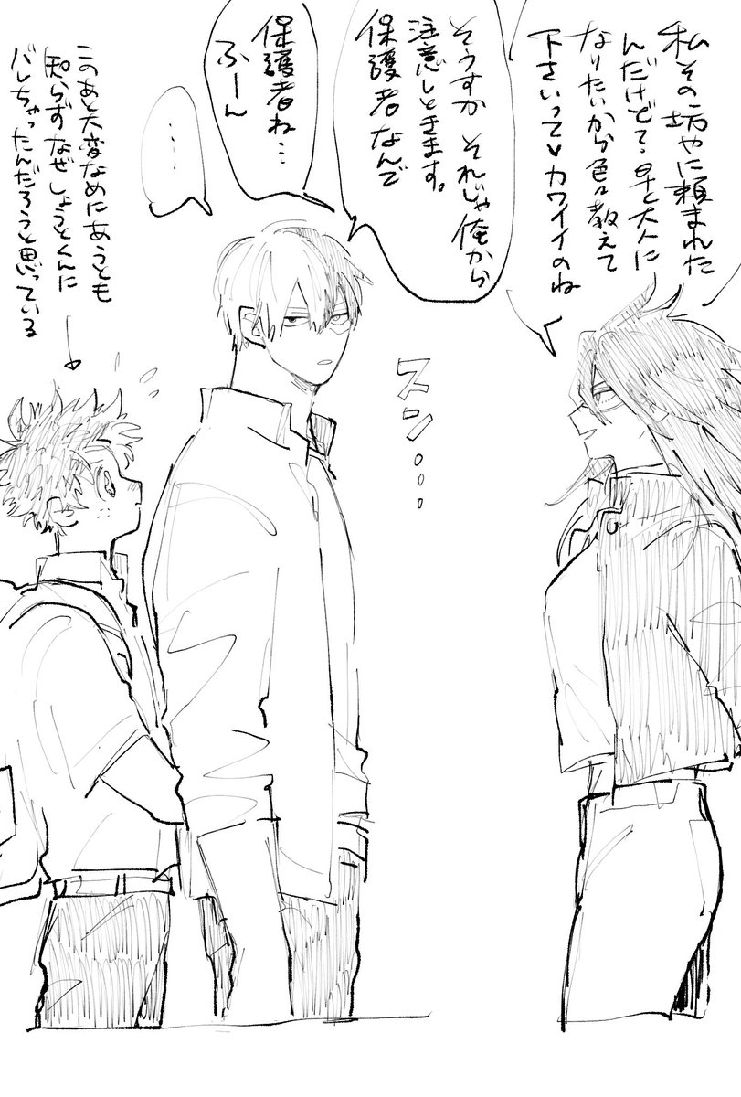家族になってもヒーロー名で呼び続けるのはどうかと思い名前で呼んでみたizkくんですが、shtくんは自分の知らないうちに大好きなmdryとクソオヤジが絡むと拗らせてしまうので父親関連は先に相談すべきでした。彼は怒りや嫉妬とも言いきれぬ初めての感情に戸惑っています(enjくんお誕生日おめでとう)