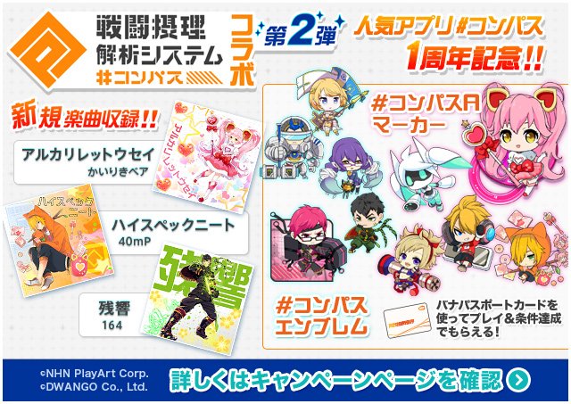 【#コンパス コラボ第1弾】10/19開催!人気アプリ「戦闘摂理解析システム #コンパス」より楽曲収録!あのヒーローのテーマ曲で今度は己とバトルしよう♪このツイートが584RT達成でエンブレムをプレゼント☆詳しくは→goo.gl/xfnAck