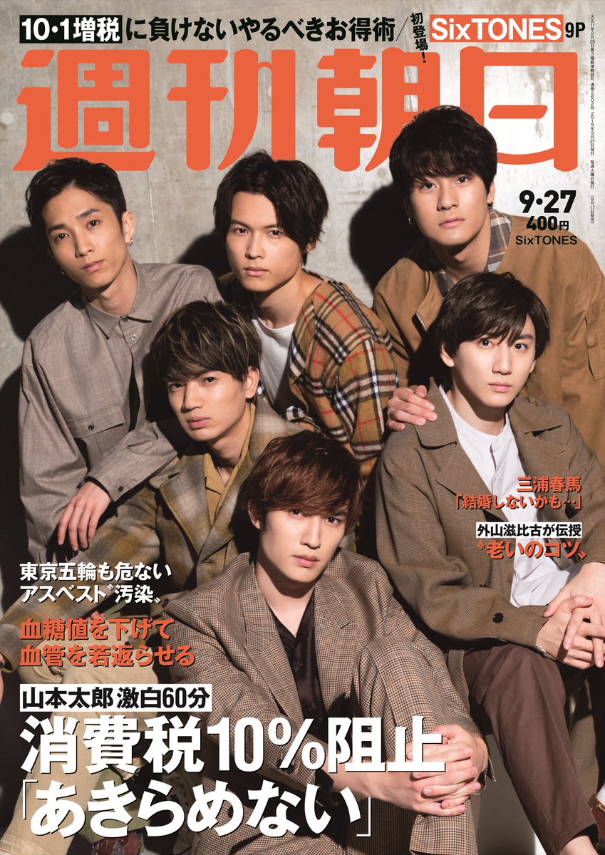 ☆彡来週9月17日発売の週刊朝日表紙は、 #SixTONES が初登場!表紙&グラビア7P&インタビュー2Pと、合計9ページでたっぷりご紹介♡