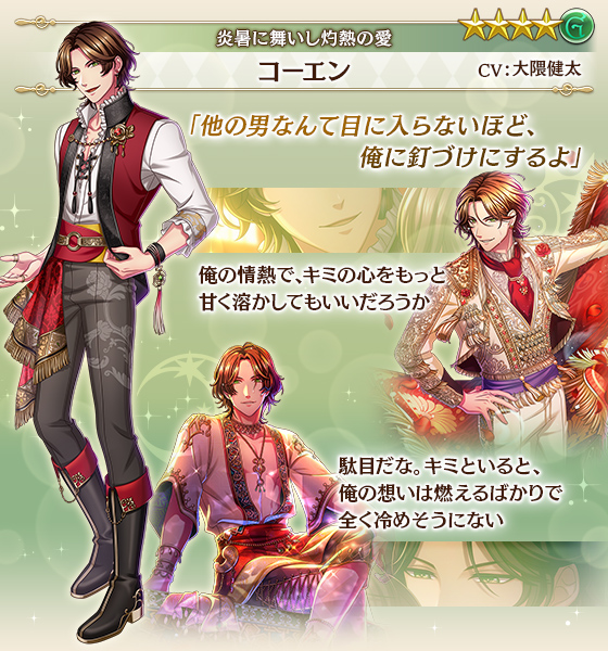イベント『炎暑に舞いし灼熱の愛』で登場する、アポロ王子(CV:小野大輔)&コーエン王子(CV:大隈健太)をご紹介!