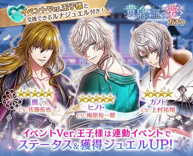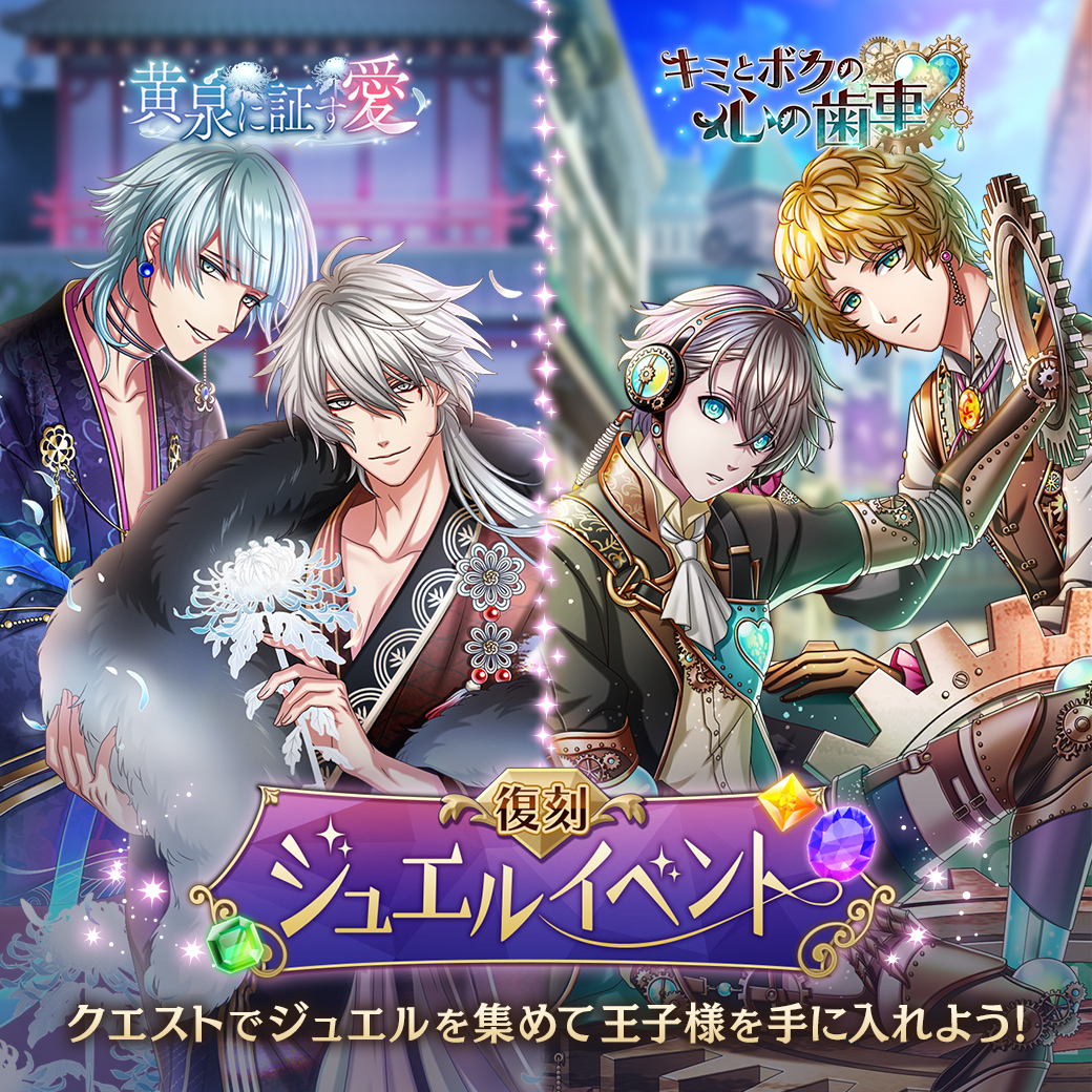 復刻ジュエルイベント開催に先立って、7/20(火)12:00より『黄泉に証す愛』&『キミとボクの心の歯車』Ver.王子様が再登場するガチャがスタート!