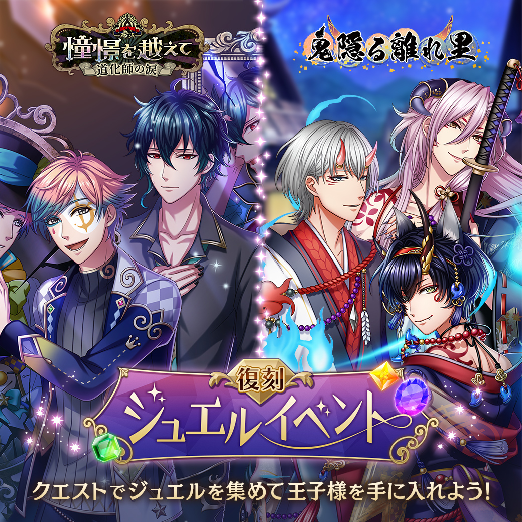 復刻ジュエルイベント開催に先立って、11/24(火)12:00より『憧憬を越えて~道化師の涙~』&『鬼隠る離れ里』Ver.王子様が再登場するガチャがスタート!