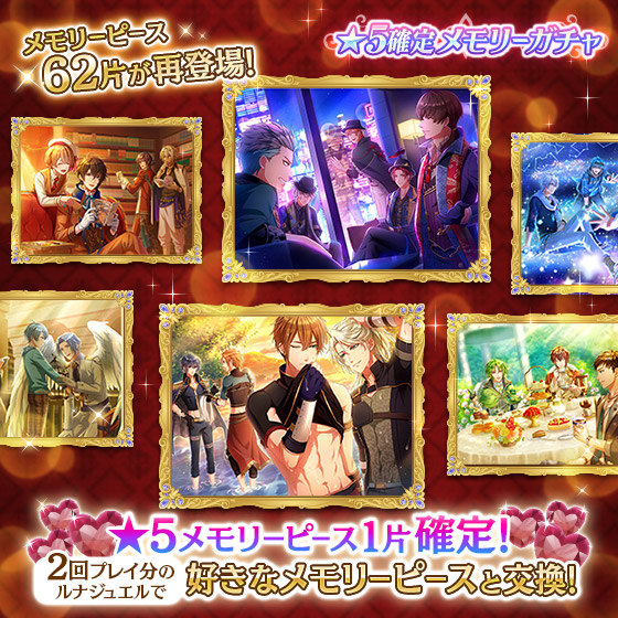 再登場している62片の★5メモリーピースの中から、1片確定でGETできるおトクなガチャです♪