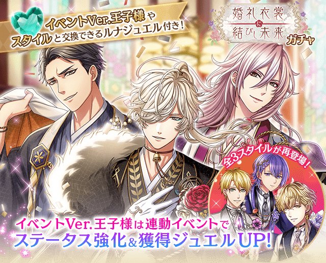 『秘密のナイトブライダル』&『婚礼衣裳に結びし未来』Ver.王子様がそれぞれのガチャで再登場!