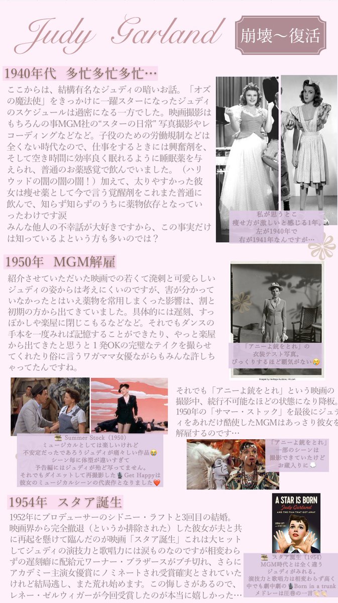 DV夫に階段から落とされ背骨を負傷するもアステアと踊れるなら!と「イースター・パレード」に出演。激痛に耐えながらテーピングぐるぐる巻きで踊っているそう。10代前半の頃は家計を支えるため年齢を5歳ほど上に偽りショーガールをするなどのかなりの苦労人💃🏻