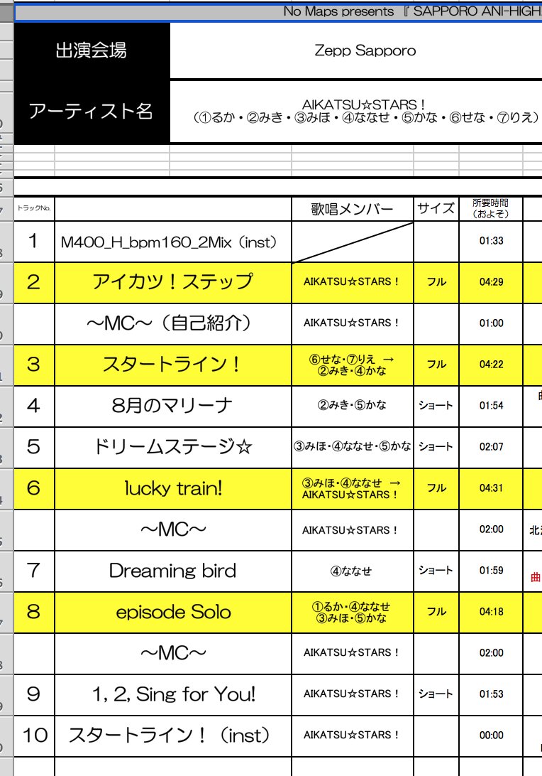 No Maps presents『 SAPPORO ANI-HIGH!! 』無事に終了しました!すっごい盛り上がりでしたね!また来られたら嬉しいです!!本日のセットリストはこちら。希望のレールがつながりましたね!! #aikatsu