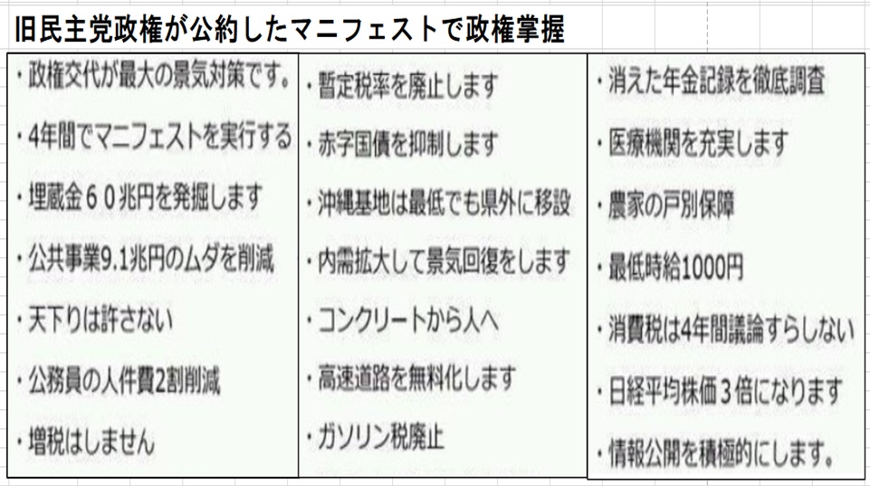 下記の公約したマニフェストは全て反故にし、実施した施策は在日外国人優遇政策。