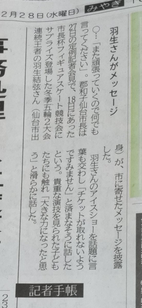 来ないでと事前に羽生さんが告知したのにアイスリンク仙台に押し掛けた身勝手なファンを(熱心)なファンなどと世論をミスリードする記事を載せてるのですか?