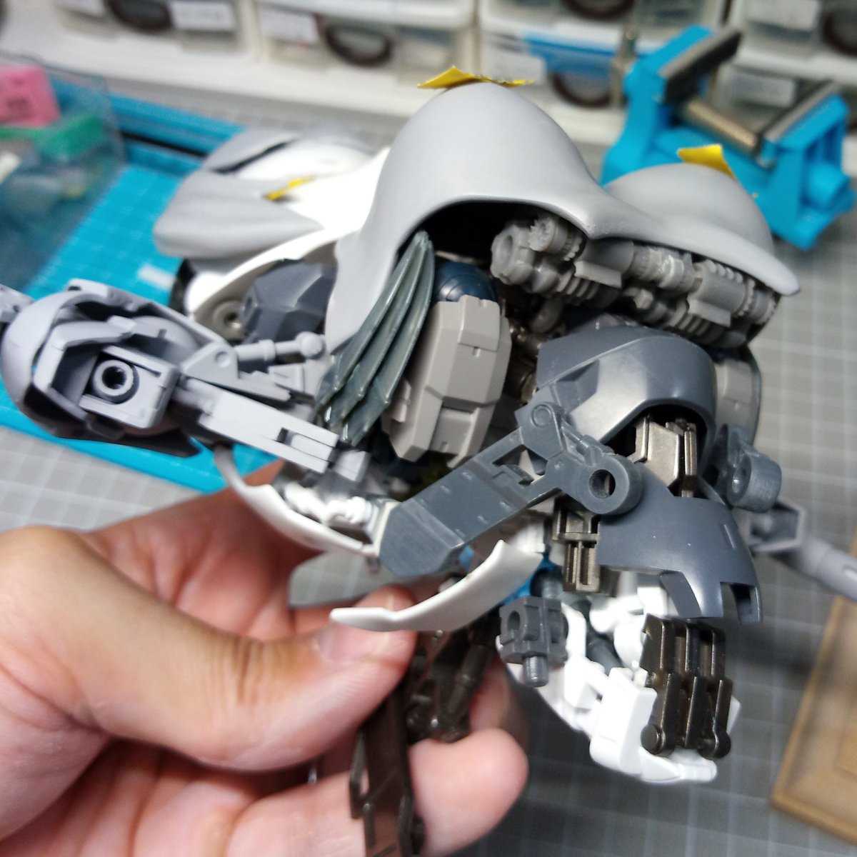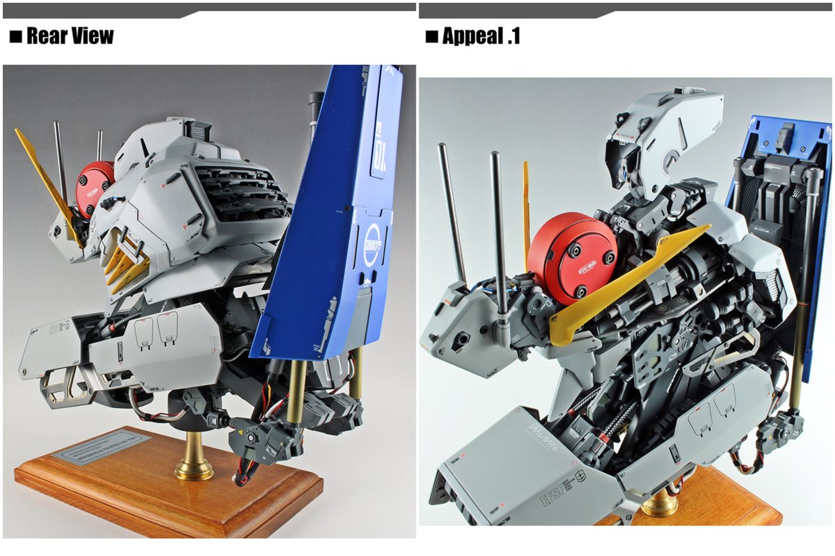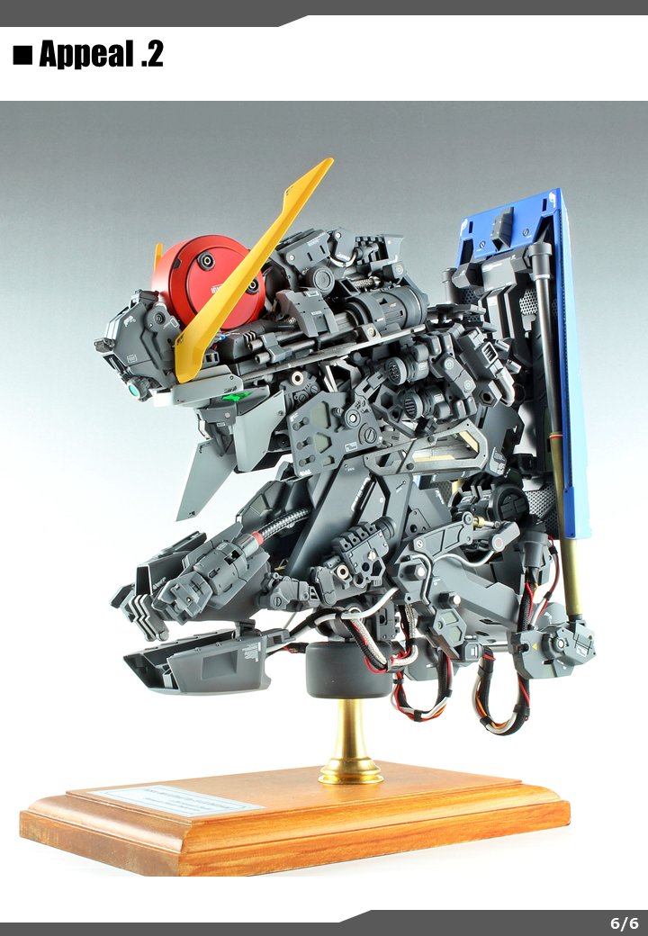プレーンな肌色の装甲とハイディテールな内部メカのコントラストが映えるように気を使いつつも、楽しく制作できました。