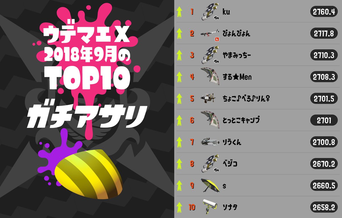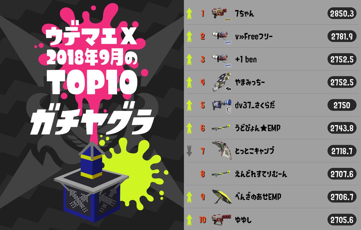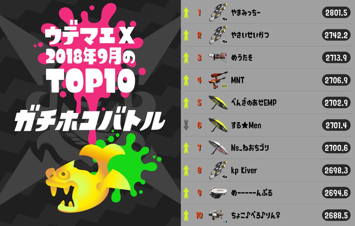 ステージ、BGM、一部のブキはVer.4.1で追加されたものを使っているので、ご参考に。
