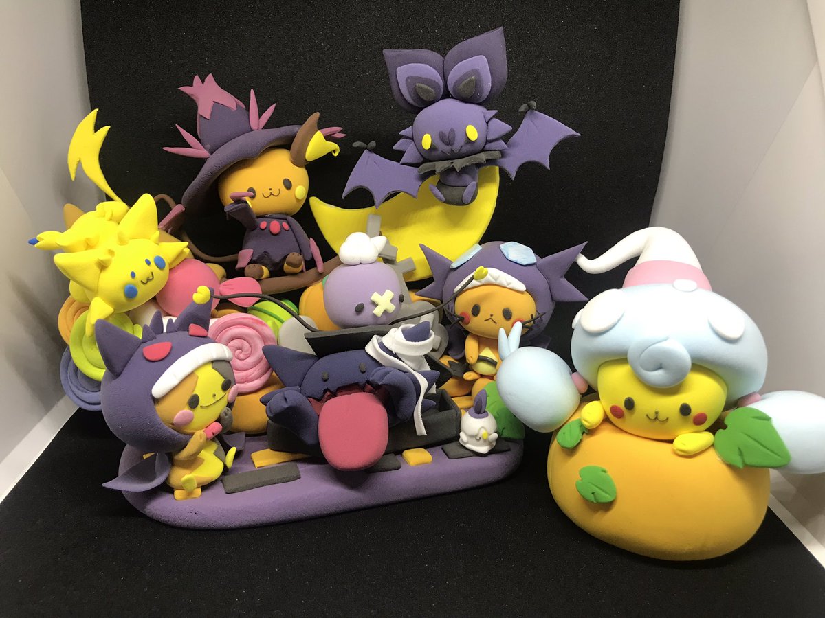 ブイズハロウィン完成しました、数が多いし何回も作り直して大変やった……巨大イーブイがお気に入り🎃 前作ったハロウィンと比べるとめっちゃでかいよ