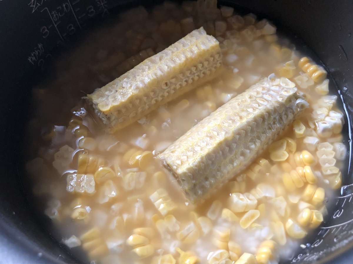 とうもろこしご飯炊く