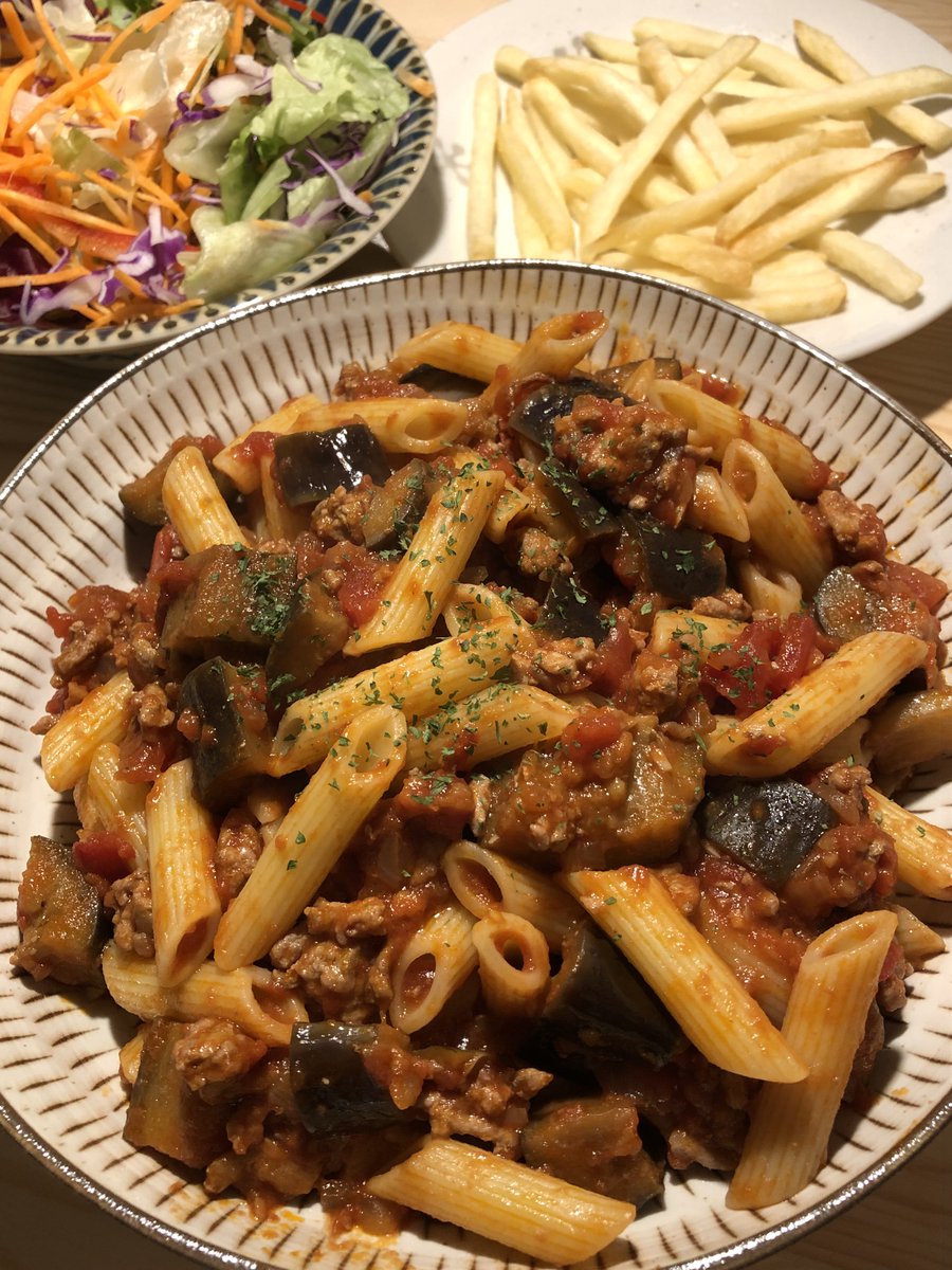 今夜はなすと豚肉のラグーペンネを作りました。「30分ほど煮る」という工程を二度見しましたが、とてもおいしくできました
