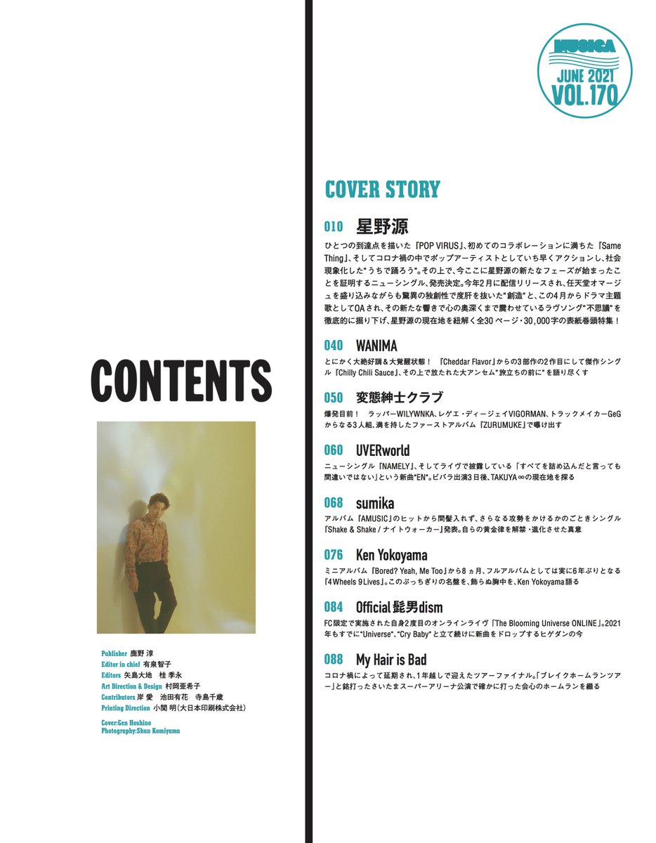 表紙巻頭特集は、星野源!