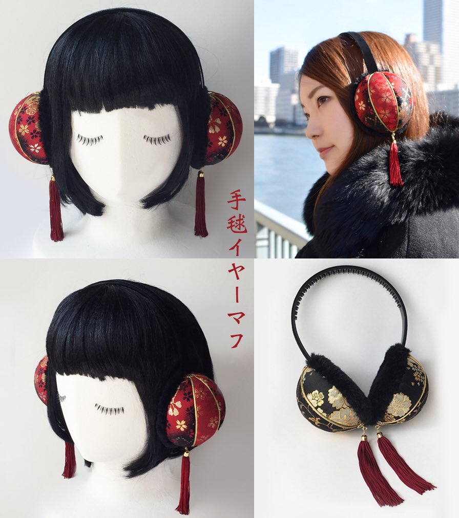 ★手毬がイヤーマフになりました!寒い時期のお出かけが華やかになる一点です*タッセルは着脱可。