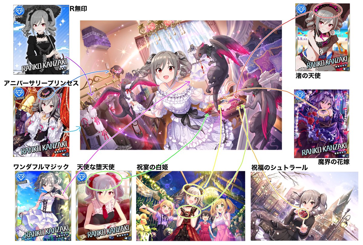 [開闢のティル・ナ・ノーグ ]神崎蘭子(特訓前)の背景にある洋服、小物類の元カード一覧です