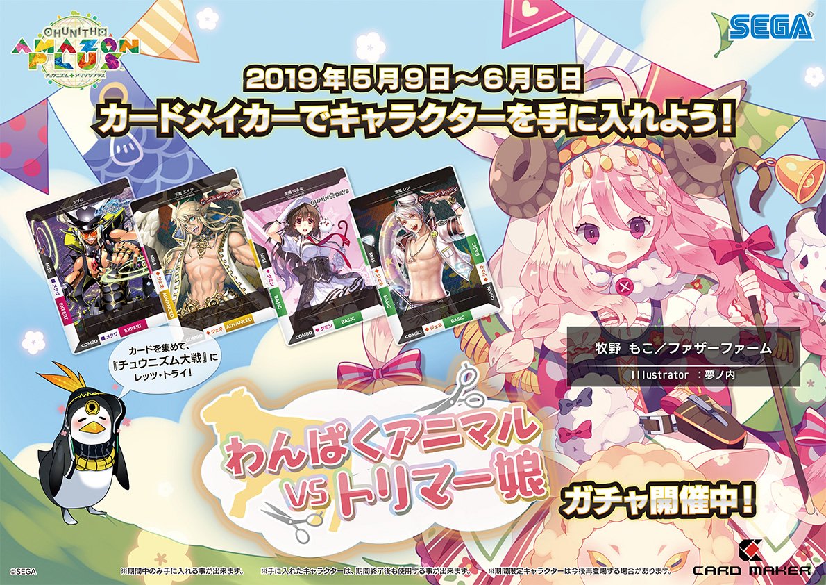 カードメイカーにて、新たなガチャプリントが開催!こどもの日にちなんで、元気いっぱいのトリマー娘「牧野 もこ/ファザーファーム」が新キャラクターとして登場するよ。持ち前の元気で、五月病も吹っ飛ばそう!!