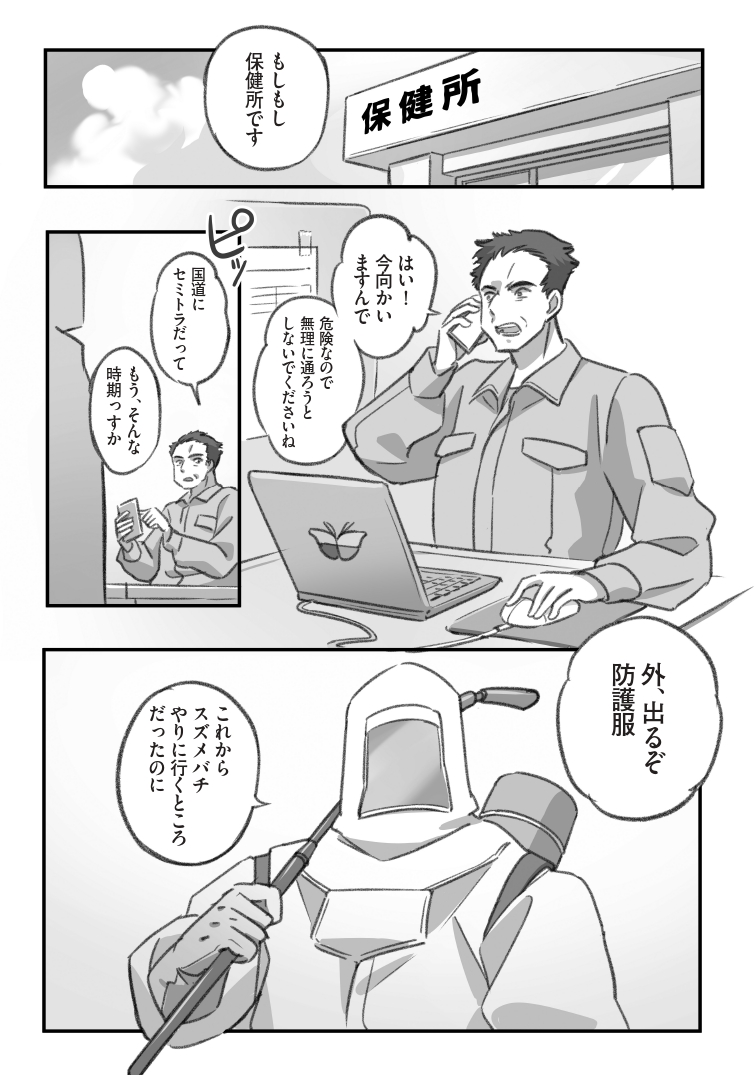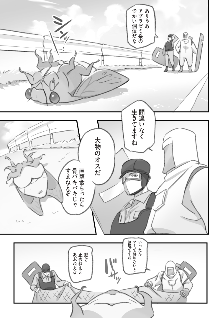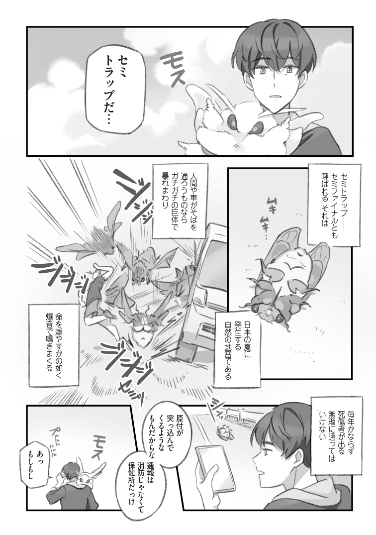 路上のセミトラップを解除する人たちの漫画