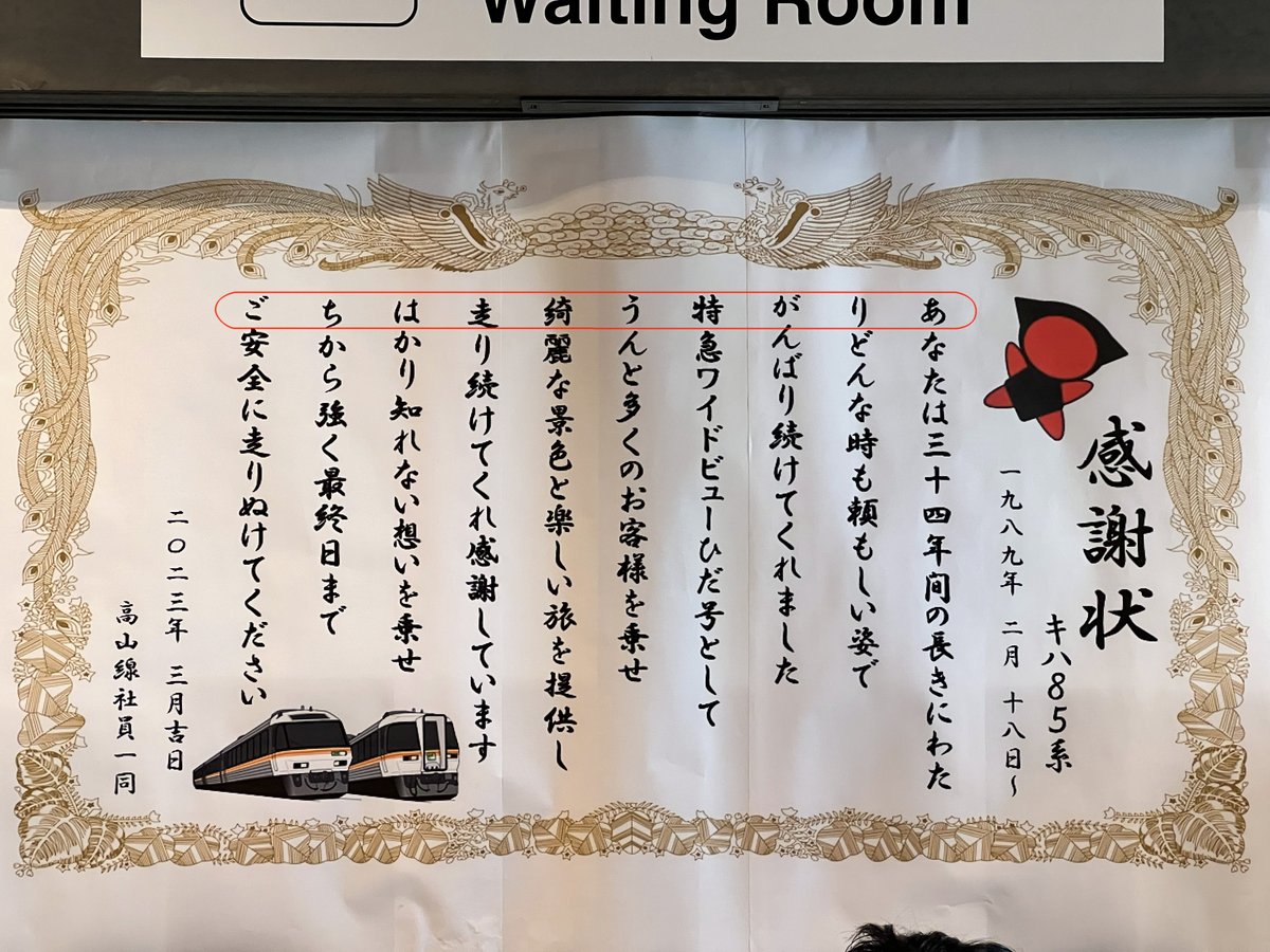 高山駅に貼ってある感謝状 私も言われて気づいたのですが… 右から