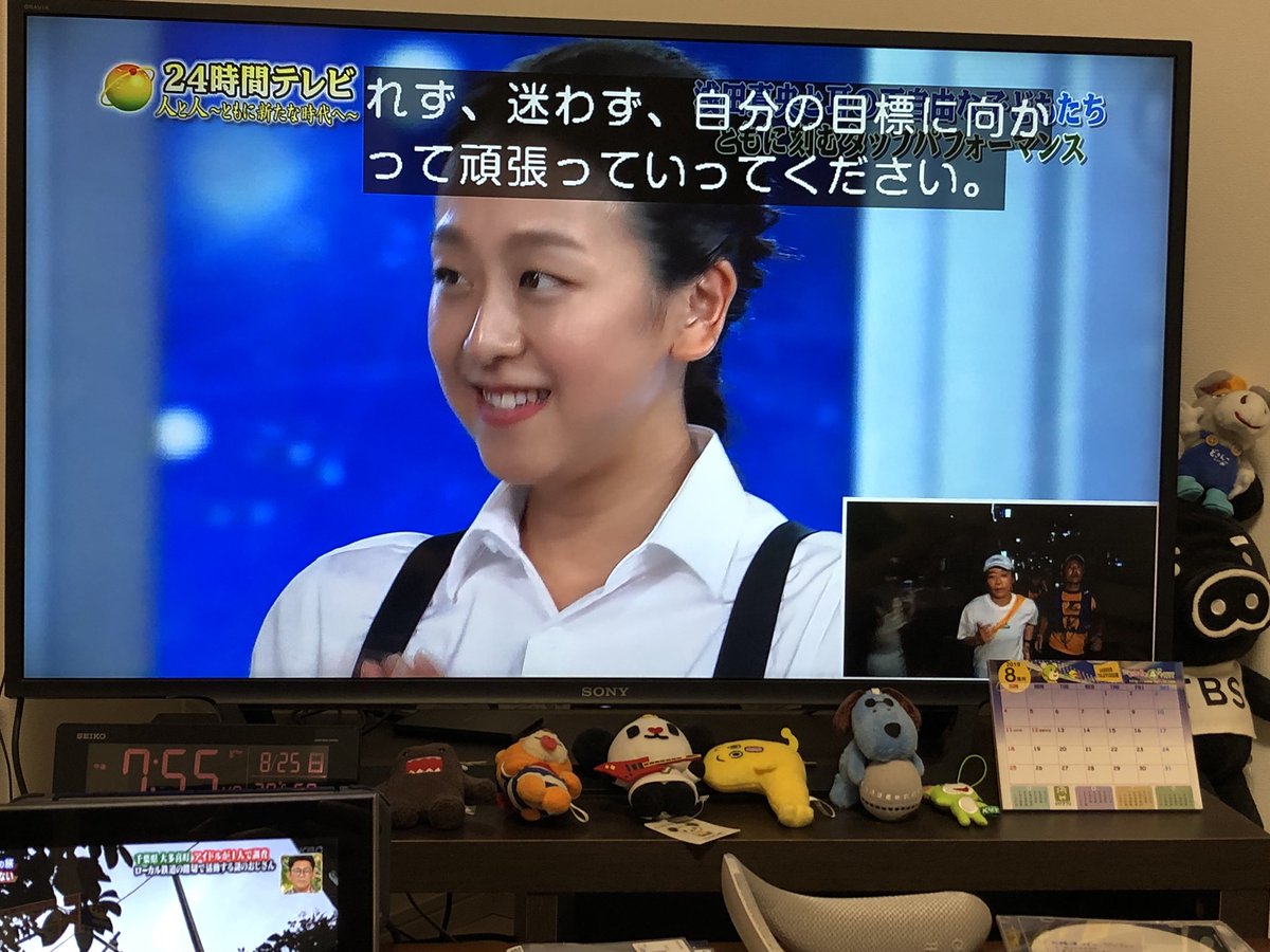 今回のMVPは駅伝ではなくて、どう考えたって浅田真央ちゃんに違いない。嵐にしやがれパートまでがっつり出演して、みとちゃんが駅伝で抜けた司会席でゲストの募金箱を受け取り、座布団運びもこなし、最後はパフォーマンスを仕切って、完璧かよ。もともと高かった好感度爆上げだよ。 #24時間テレビ42