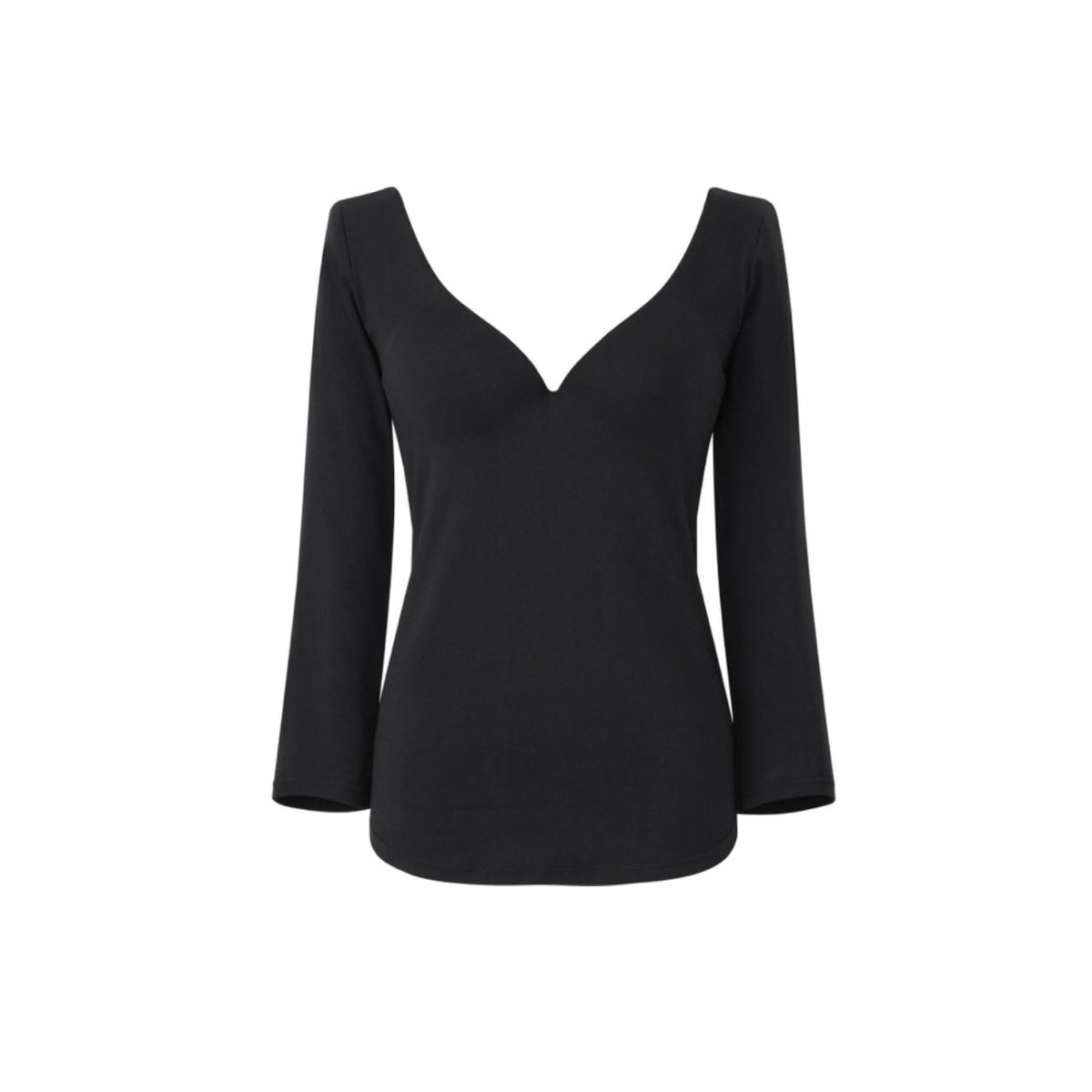 こういうボディラインが出るお洋服大好物🤤即くびれが出現します✨骨ストで首詰まり苦手だけど、深めのVネックだからハイネックを合わせても首元すっきり!