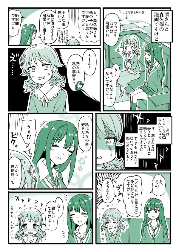 森久保とか智絵里とか島村さんとか仁奈ちゃんとか可愛いを詰め合わせた所に凛ちゃんを放り込むとずっと「ふふっ」「ふふっ」って笑ってて笑顔の撮れ高すごそう